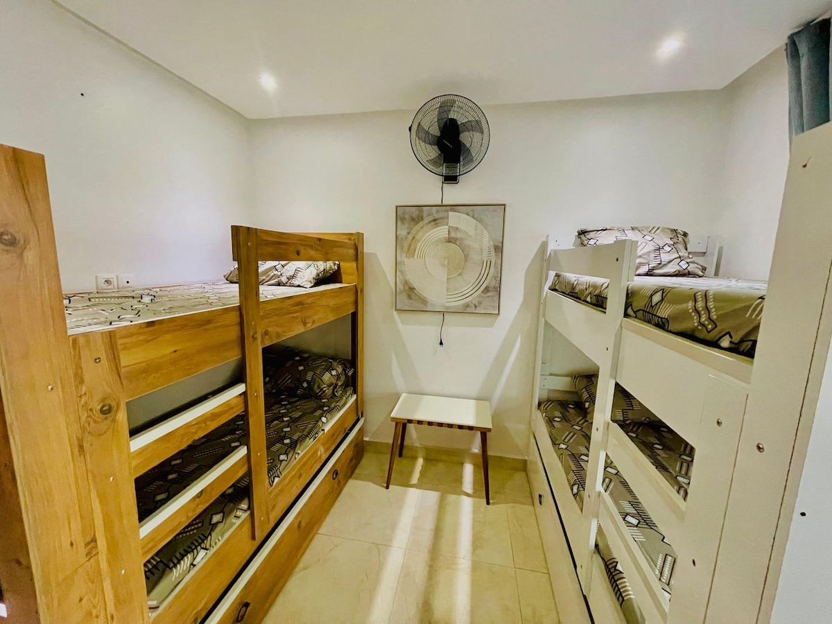 Moderne, confortable et ultra fonctionnelle. Elle se situe au bord d’une ravissante petite plage, que l’on appelle la « troisième plage » de l’Ile. Collée à la falaise qui domine la fameuse Droite de Ngor, la SURF HOUSE est le camp de base parfait pour profiter des vagues dakaroises. Les Almadies ou Le Virage sont à 5 minutes en voiture, Ouakam à 10 minutes, et la droite de Ngor est… au bout du jardin ! Plus précisément : Le logement proposé est un rez-de-jardin de 100 m2.