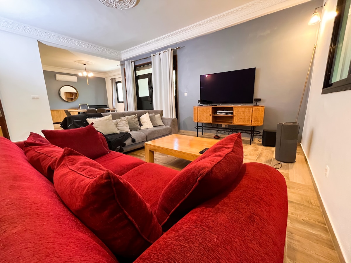 Maison neuve meublée disponible : Venez profiter de cette chaleureuse maison lumineuse et moderne située aux Maristes dans un quartier sécurisé et calme. Profitez en couple ou en famille de notre cher pays de la Teranga en toute tranquillité afin de découvrir Dakar et ses alentours dans toute sa splendeur. Pour le bon déroulement de votre séjour, nous serons disponible pour toute information complémentaire.