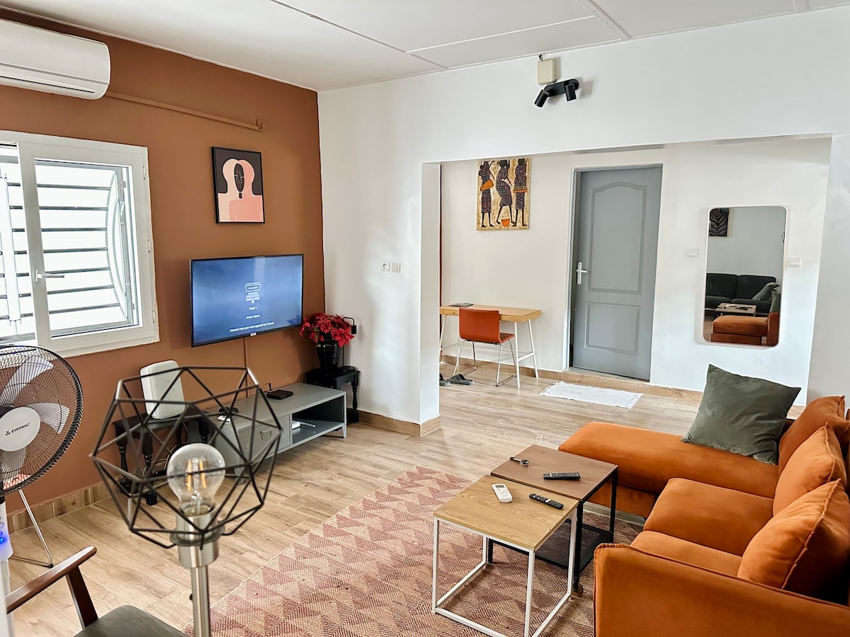 📍 Ouest Foire, 1er étage d’une villa, à 10 min de la plage de Yoff, séjour lumineux (TV, Wi-Fi) 🛌 3 chambres dont 1 suite parentale avec salle de bain privée + lave-linge) 🚿 2ᵉ douche + WC 🍳 Cuisine équipée : gazinière, frigo, micro-ondes, cafetière, ustensiles 🌬️ Ventilateurs dispo + 🦟 moustiquaires pour votre confort ⚡ Électricité incluse (❄️ clim en option) ❄️ La clim est en option , au tarif de 20€/jour. Le règlement se fera directement via le site (rubrique « Envoyer de l’argent »).
