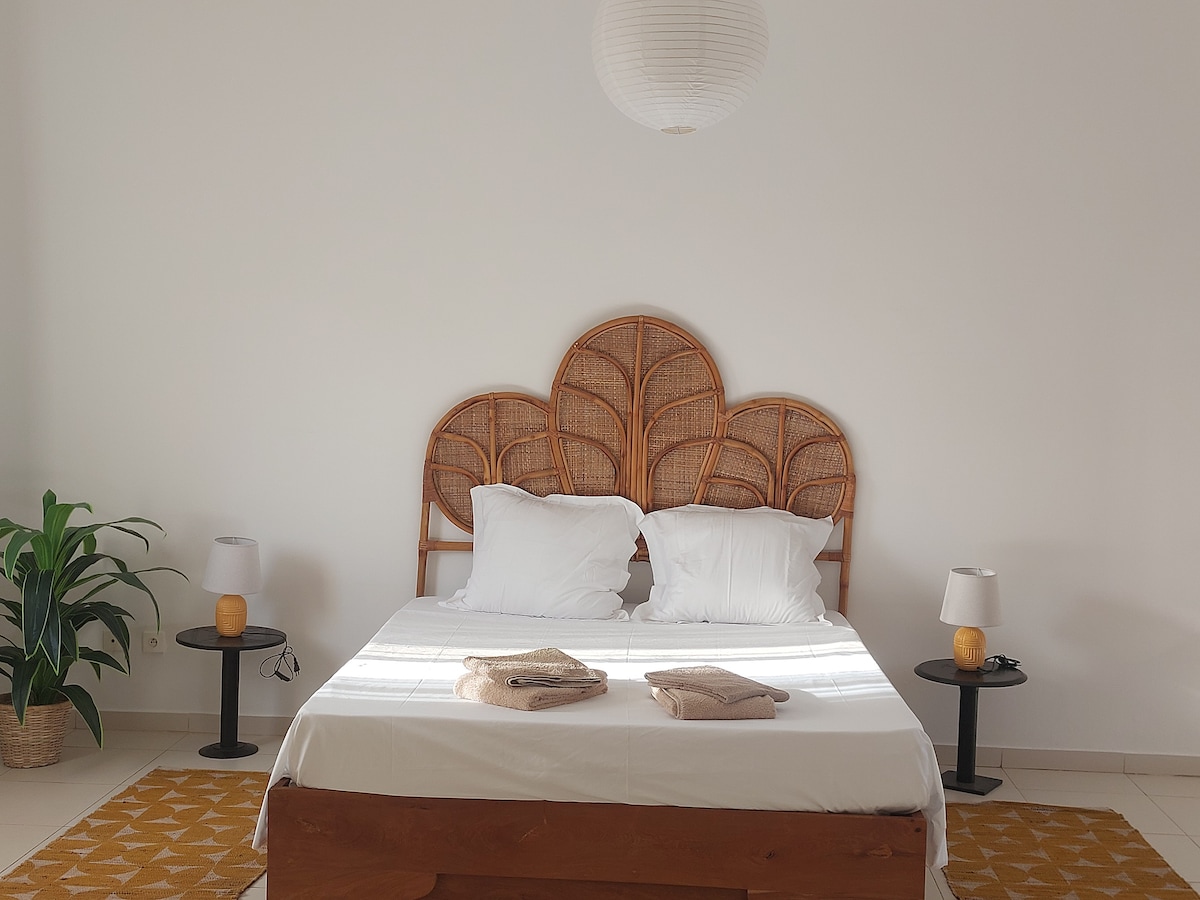 Escape to a stylish 2bedroom villa in Mamelles, minutes from Almadies’ beach restaurants, The Light House and the monument of Renaissance. A private patio with a breakfast nook, perfect for unwinding. A spacious living room blending urban and rustic charm with warm décor. Two comfortable bedrooms providing a relaxing retreat, while the fully equipped kitchen makes meal prep easy. Enjoy high-speed internet and 2 well-appointed bathrooms, ensuring a serene stay for families or friends.