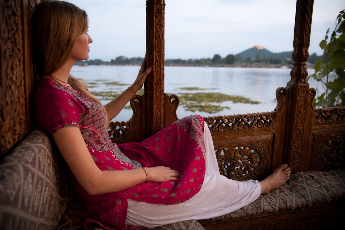 Enjoy the so Anchored on the bank of the idyllic Nigeen Lake Harmukh Houseboat is anything but a standard holiday home. Traditional wood panelled interiors opulent ceilings intricately carved details and plush hand-woven carpets give you a glimpse of Kashmir’s rich heritage Comprising two comfortable ensuite bedrooms A marvellous dining room and a large living room take in splendid views of the lake and mountains from the front balcony or pick up local goods from passing shikaras.