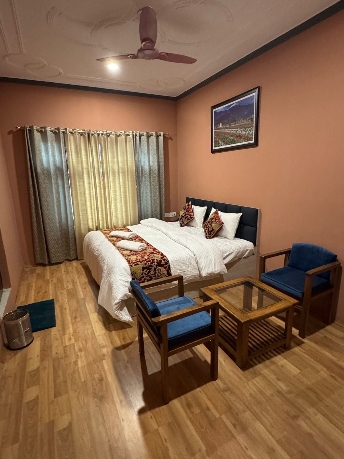Emaarat Chalet in Srinagar is a haven of tranquility and luxury, offering an unforgettable escape amidst nature’s splendor. Nestled in a serene and secluded setting, the villa provides breathtaking vistas of Dal Lake and the majestic Zabarwan Mountain Range, creating a picture-perfect backdrop for a peaceful retreat. The interiors exude earthy elegance, blending natural textures with a sense of elemental grandeur, ensuring both comfort and sophistication.