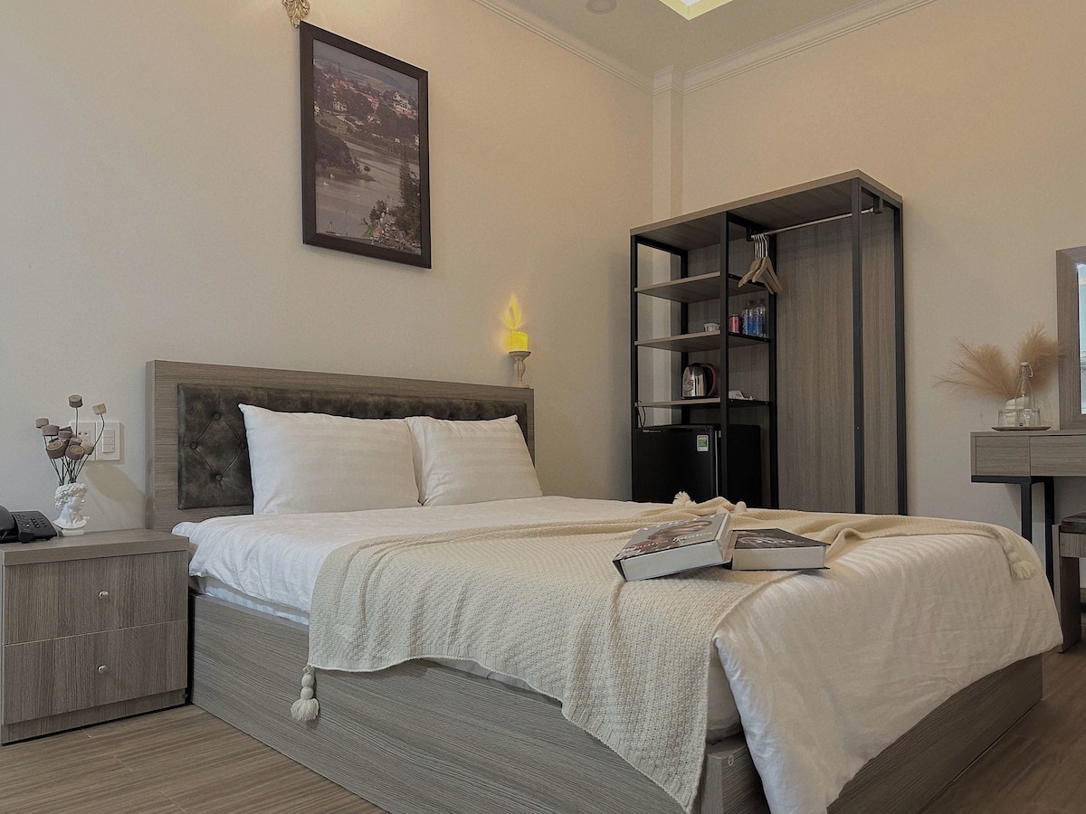 A cozy studio in Dalat, nestled on a small hill with views of a serene part of the city. The room includes an attached bathroom with a sunken shower that doubles as a cool tub on warm days. Designed with an open layout to bring nature closer to your stay. Why us: Great location: 10-min walk to downtown, food stalls nearby. Lush garden. Free homemade breakfast, tailored to your diet. Free coffee and tea anytime. Secure, spacious parking. Friendly host family: make you feel at home.