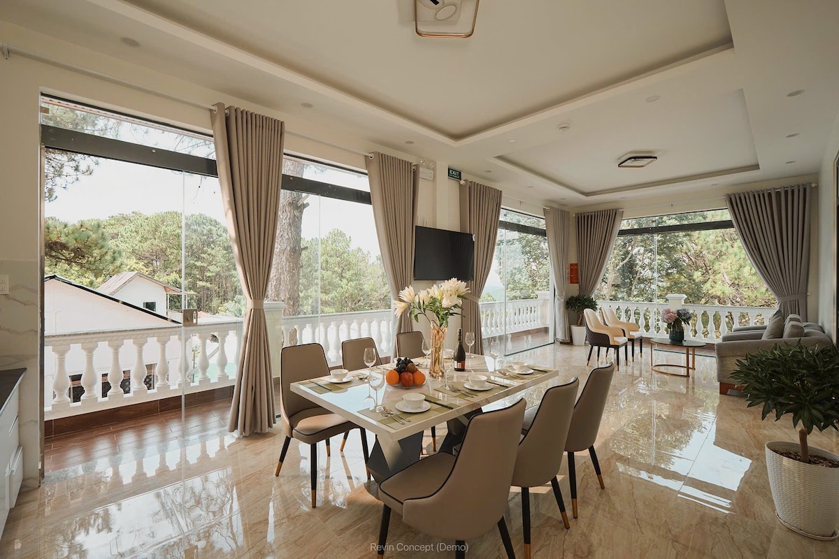 Collab casa villa là 1 căn biệt thự mới được xây dựng gần trung tâm Đà Lạt với view đồi núi - 5 bedrooms with king size beds 1m8x2m - 7 bathrooms with bathtubs - The living room and kitchen are fully equipped with modern equipment and are completely separate. - with just a short 6 minute drive to DaLat’s city center and bustling night market, our Airbnb is perfectly located to explore and experience the best of the area - free parking
