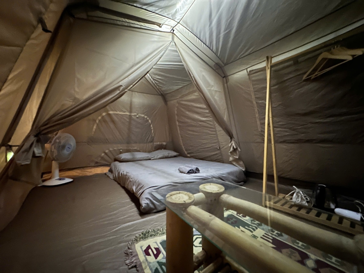Spacious 2 bedroom Tent with Large Sleeping bags, Fan, light, chairs, and Brand New bathrooms and showers. Large BBQs, Fire Pits, Organic Farm, Motorbike rental, ATV rental, Trampoline, Slack Line, Golf Net, Hiking, Directly across from the famous Da Phu hill (Cloud Forest) only 10 minutes from Dalat