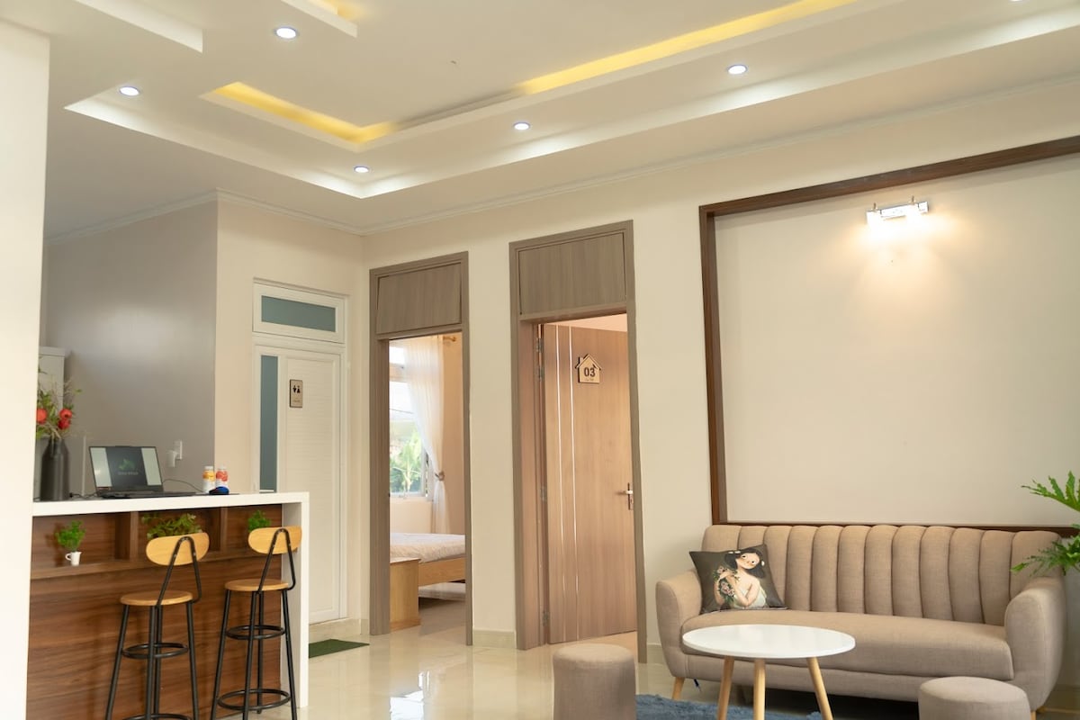 A cozy studio in Dalat, nestled on a small hill with views of a serene part of the city. The room includes an attached bathroom with a sunken shower that doubles as a cool tub on warm days. Designed with an open layout to bring nature closer to your stay. Why us: Great location: 10-min walk to downtown, food stalls nearby. Lush garden. Free homemade breakfast, tailored to your diet. Free coffee and tea anytime. Secure, spacious parking. Friendly host family: make you feel at home.