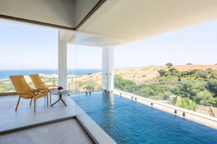 Romantic Getaway with a garden that reaches the Sea with the most breathtaking views over the straights of Gibraltar. Pure relaxation in a rural setting. 10 min drive or a 30min walk to vibrant Tarifa town and beach life on most famous beaches in south of Spain
