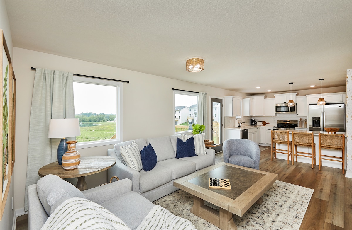 This 4BR/3BA Granger retreat sleeps 12+ and is perfect for families, teams, and group getaways. Enjoy 2 spacious living rooms, an open kitchen/dining concept, and a lower-level bar with games for endless fun. Gather around the outdoor fire table, meals on the grill, or play yard games while taking in peaceful field views and wildlife. Just minutes from Grimes and 14 miles from Des Moines, close to Jester Park, Saylorville Lake boat rentals, Rail Explorers, Hy-Vee Multiplex, and Ohana Sports.