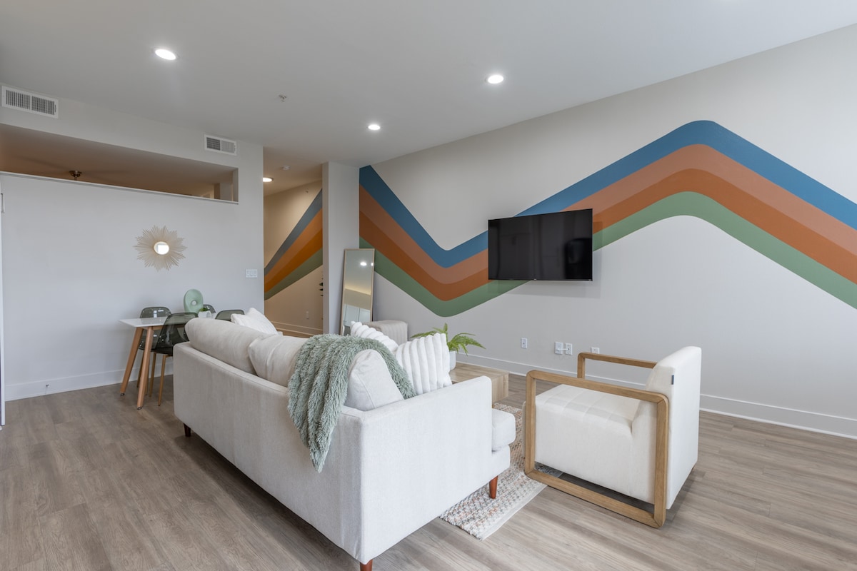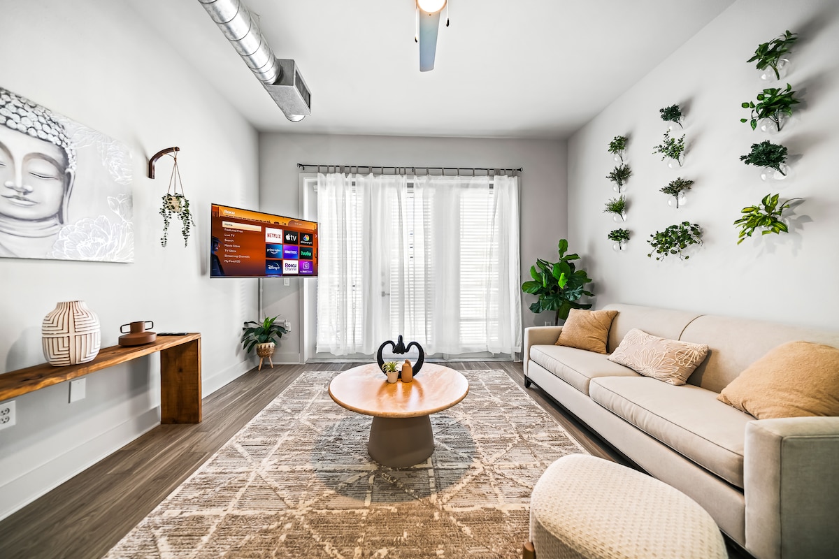 Experience the best of city living in our modern minimalist retreat! Pets Stay Free Enjoy breathtaking views of the city skyline from the comfort of our sleek and stylish high-rise apartment. Located in the heart of downtown, you'll be steps away from top attractions, trendy restaurants, and vibrant bars. Our apt. is the perfect haven for couples, solo travelers, and business professionals seeking a stylish and convenient base for their city adventures.