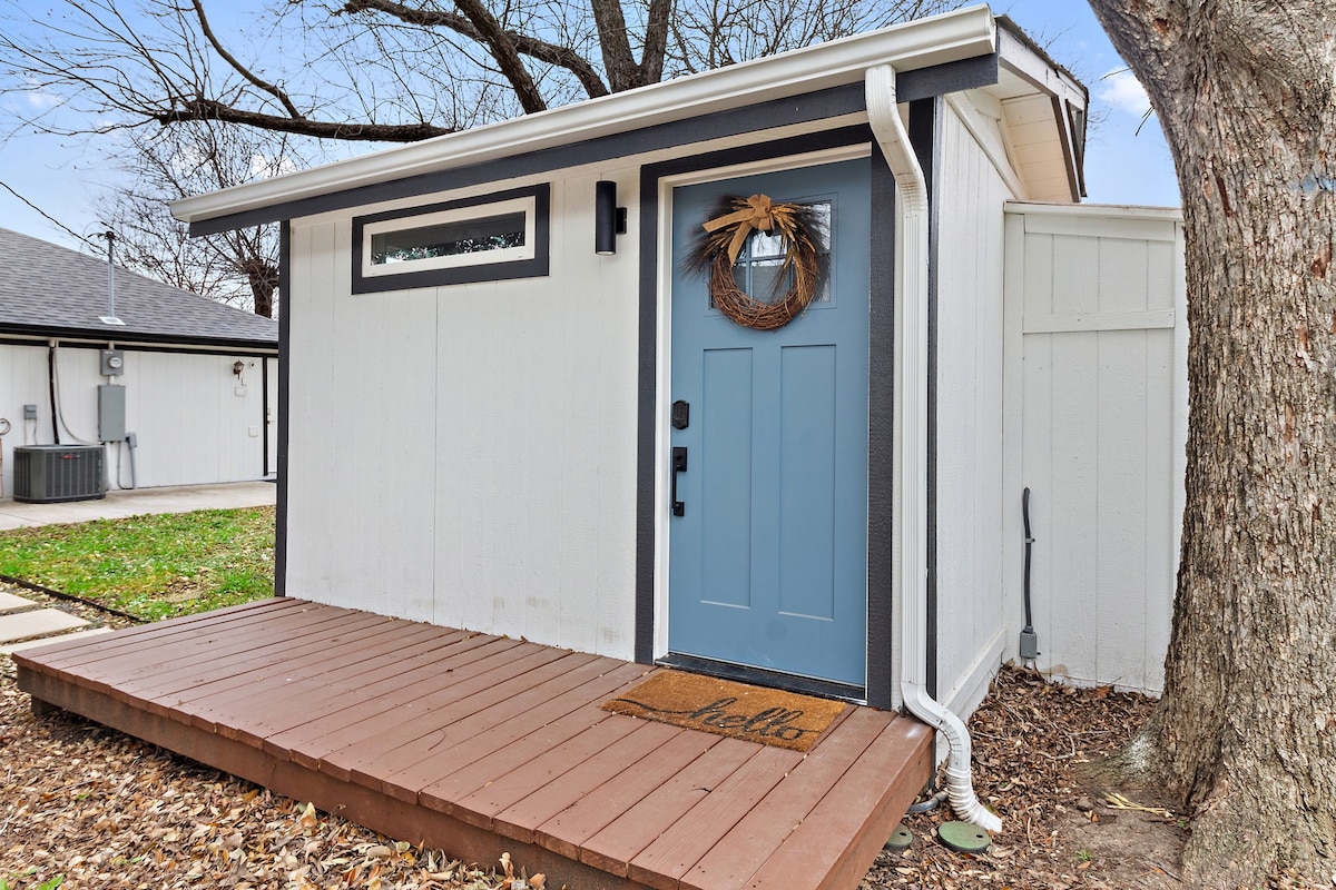 Quaint, clean, and relaxing. Experience a nordic-inspired stay at The Pear Space, our centrally-located tiny home in the Lovefield area of Dallas. This private living space is conveniently located near the airport & medical district. Recently converted from our detached garage, it is a complete home featuring a private entrance, fully equipped kitchen, washer/dryer, & large windows that bring in lots of natural light. We offer this space to share our love for tiny living.
