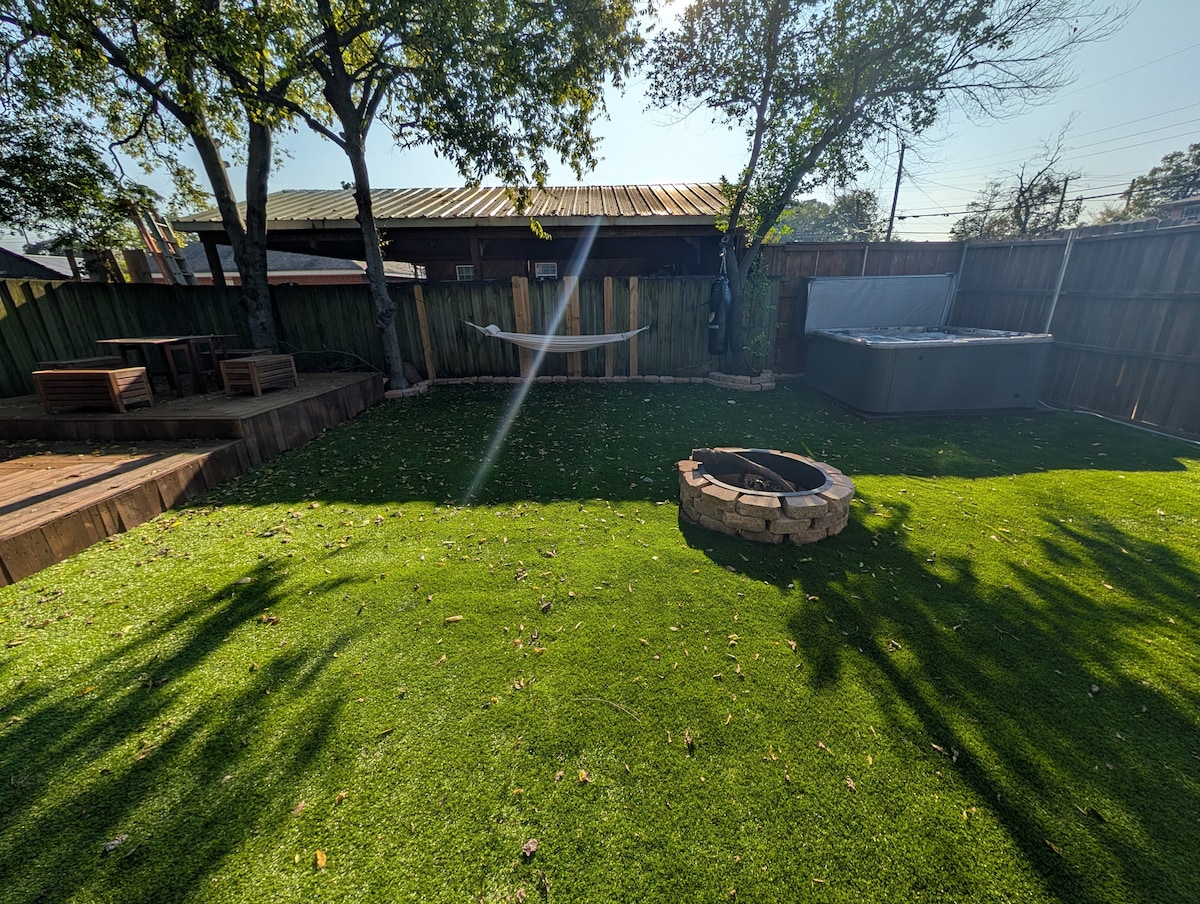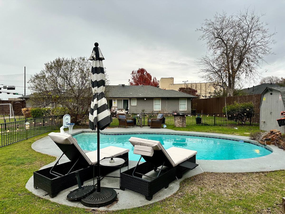 Gilded Getaway – Hosted by All Season Escapes Welcome to the Dallas Modern Retreat, where sleek design meets cozy comfort. ✨ Highlights: 🏡 Stylish living spaces & peaceful bedrooms 🎮 Game room with life-size yard games 🔥 Fire pit with Adirondack seating 💦 Seasonal stock tank pool & hot tub 👢 Vibrant Texas-style mural wall 📽 Outdoor movie setup under the stars 🍽 Fully equipped kitchen for entertaining 🌆 Just minutes from downtown Dallas Your ultimate Dallas escape—book your stay today!