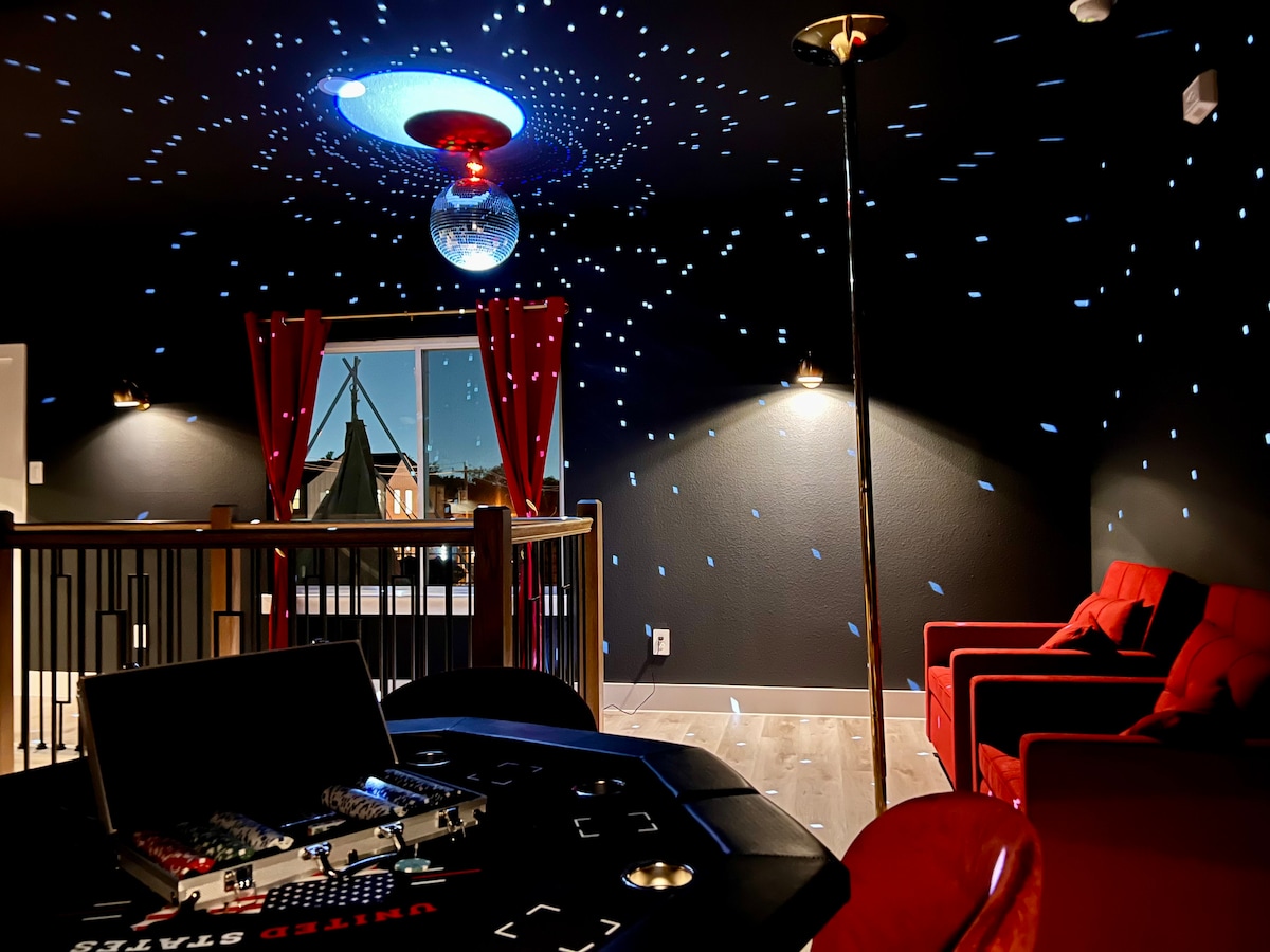 NEW! Texas Boudoir Estate SpaHome! Featuring art by nationally renowned Exotic/BDSM photographer MACK STURGIS ! This private, exclusive and unique Spa Home features an INDOOR POOL, SAUNA, STEAMROOM, HOT TUB, Jacuzzi, Massage Tables, Relaxation Pond, Paved Garden, Adult themed rooms, Two Primary King Rooms w/ attached bath & more. Complete privacy and tranquility await while being only 10 minutes from all of Dallas's major attractions such as Uptown, Oak Lawn, Galleria, Plano and Downtown.