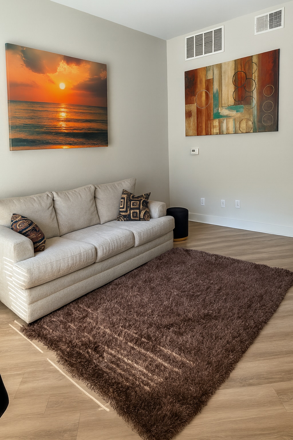 Step into a world of laid-back luxury and vibrant style with our charming boho-inspired Airbnb. Designed to be a cozy escape, this space blends eclectic decor with comfort, creating a haven where every detail invites relaxation. - 1 Full Bedroom - 1 Sleeper Sofa - Free Parking - Located next shops & restaurants - Keurigg Coffee - Fully Equipped Kitchen - Foil, Salt & Pepper, Oil - Work Space - Washer/Dryer & Included PODS - Pool - Gym - Prime Location - Safe Pet friendly Neighborhood