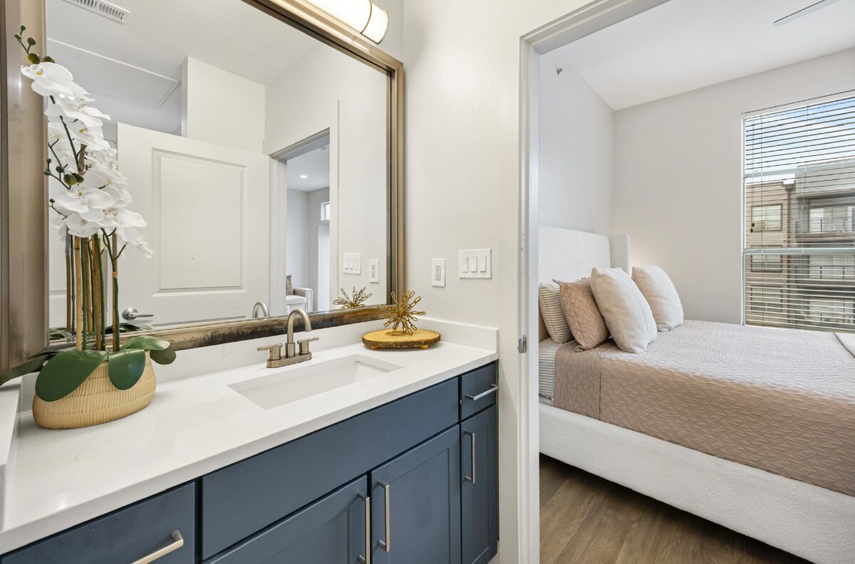 Experience the best of city living in our modern and stylish apartment. This unit resides in a high rise building. With 40+ amenities. The rooftop features a pool and fitness facilities. Located in a trendy and vibrant neighborhood with plenty of shops, restaurants, and cafes within walking distance. Public transportation easily accessible for exploring the city Whether you're here for work or play, our unit is the perfect home base for your stay.
