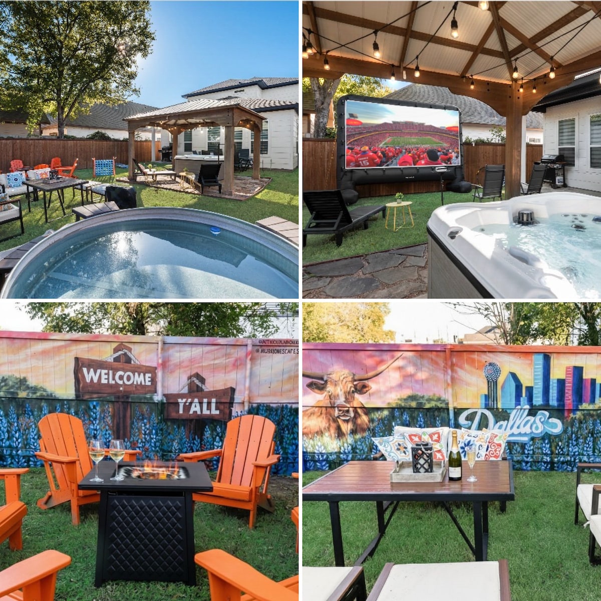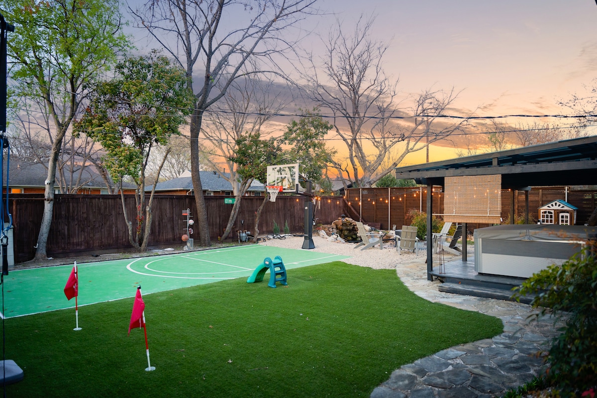 Welcome to our luxurious family-friendly Airbnb! Our home has all the amenities you need for a comfortable and enjoyable getaway with your loved ones. Watch movies and TV shows on the huge 85-inch screen, relax in the hot tub, or play in the grassy backyard. We even have a cozy reading nook for quiet moments. Located near Legacy West, The Star, RoughRiders Baseball, and many shopping malls, you'll never run out of things to do. Book your stay today and start planning the ultimate vacation!
