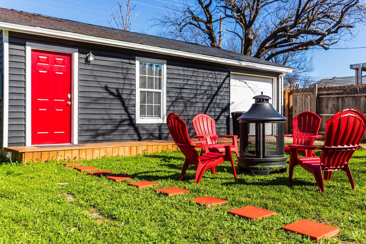 Center of Bishop Arts. Nestled in the quaint & secluded backyard. Enjoy tasty restaurants, fun bars, & lots of shopping right outside your door! Indulge in bedroom bliss in your comfortable bed, soft sheets & fluffy pillows...and soft blue colors that invite relaxation and comfort. Enjoy the beautiful outdoor setting reserved for you. Well stocked kitchenette and full coffee bar. Smart TV . Ten minute drive from downtown and close to mayor event venues! Booking fast. Save your spot now!