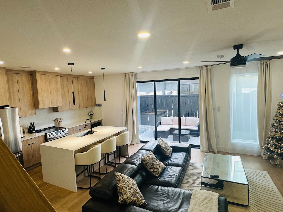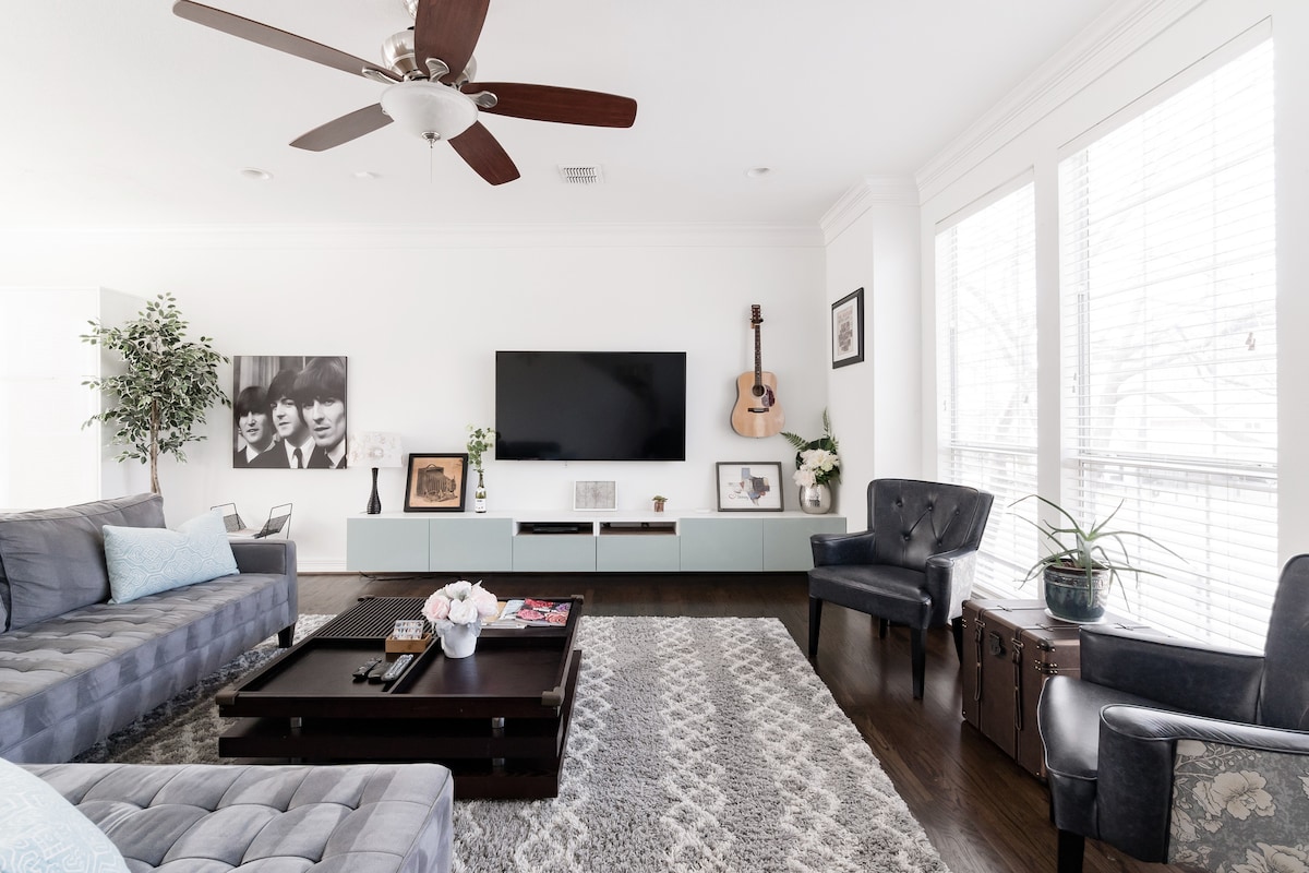 Get the best of urban living in this tucked away luxury townhouse! Enjoy everything from cooking your heart out in the fully equipped luxury kitchen, to kicking back in front of the 86” TV (YouTube TV, Netflix, Disney+), or just simply enjoy a cocktail on the back patio! Luxury linens (1200 thread-count sheets, RH towels, amazing mattresses), well equipped bathrooms, walk-in closet, etc. If business travel is your game, enjoy high speed WiFi and a full desk for your workspace!