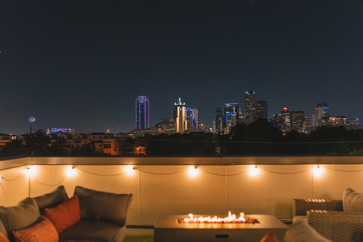 Welcome to this stunning 4-story townhome with a rooftop terrace, located in the heart of Dallas, Texas. Experience modern comfort and style captivated by impeccable Dallas skyline views! This newly constructed townhome offers the perfect opportunity to explore downtown Dallas attractions and retreat to unbeatable location featuring an open-plan living/dining area with a pool table, a gourmet kitchen with a balcony, 2-bedrooms, 3-bathrooms, and a spacious rooftop equipped with a fire pit!