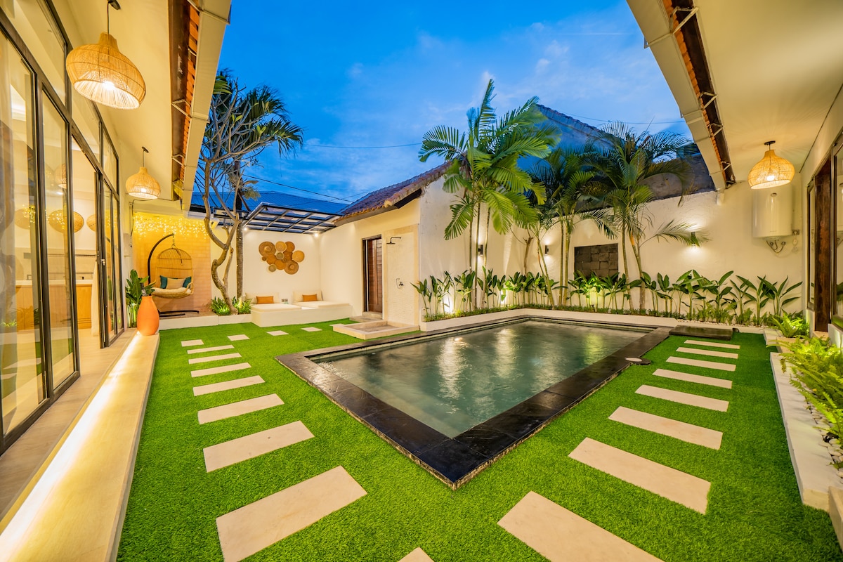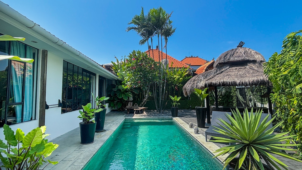 Enjoy a calm, tropical hideaway in the heart of Seminyak—perfect for families, couples, or friends. Spend your mornings on a stylish wicker lounger, soak up the sun on the deck, and cool off in your private pool, all tucked inside lush gardens just steps from Seminyak’s best spots. Strategic location (walkable): -1 min to Eat Street -4 mins to Sisterfields Café -5 mins to Seminyak Village Mall -7 mins to La Favela -10 mins to Petitenget Beach