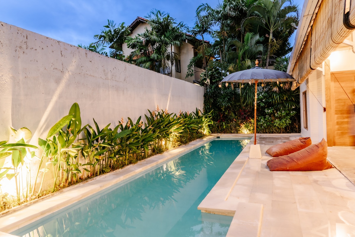 Brand New Villa in a Prime Berawa Location • 2 stylish air-conditioned bedrooms with garden views • En-suite bathrooms, including outdoor shower by the pool • Rooftop terrace — perfect for sunset drinks or yoga • Sparkling swimming pool • Open-plan living room & fully equipped kitchen • 300 Mbps Wi-Fi for work or streaming • Daily cleaning with fresh towels & linens • Netflix & PS5, baby amenities & BBQ grill on request • Concierge service for airport transfers, scooter rentals & more