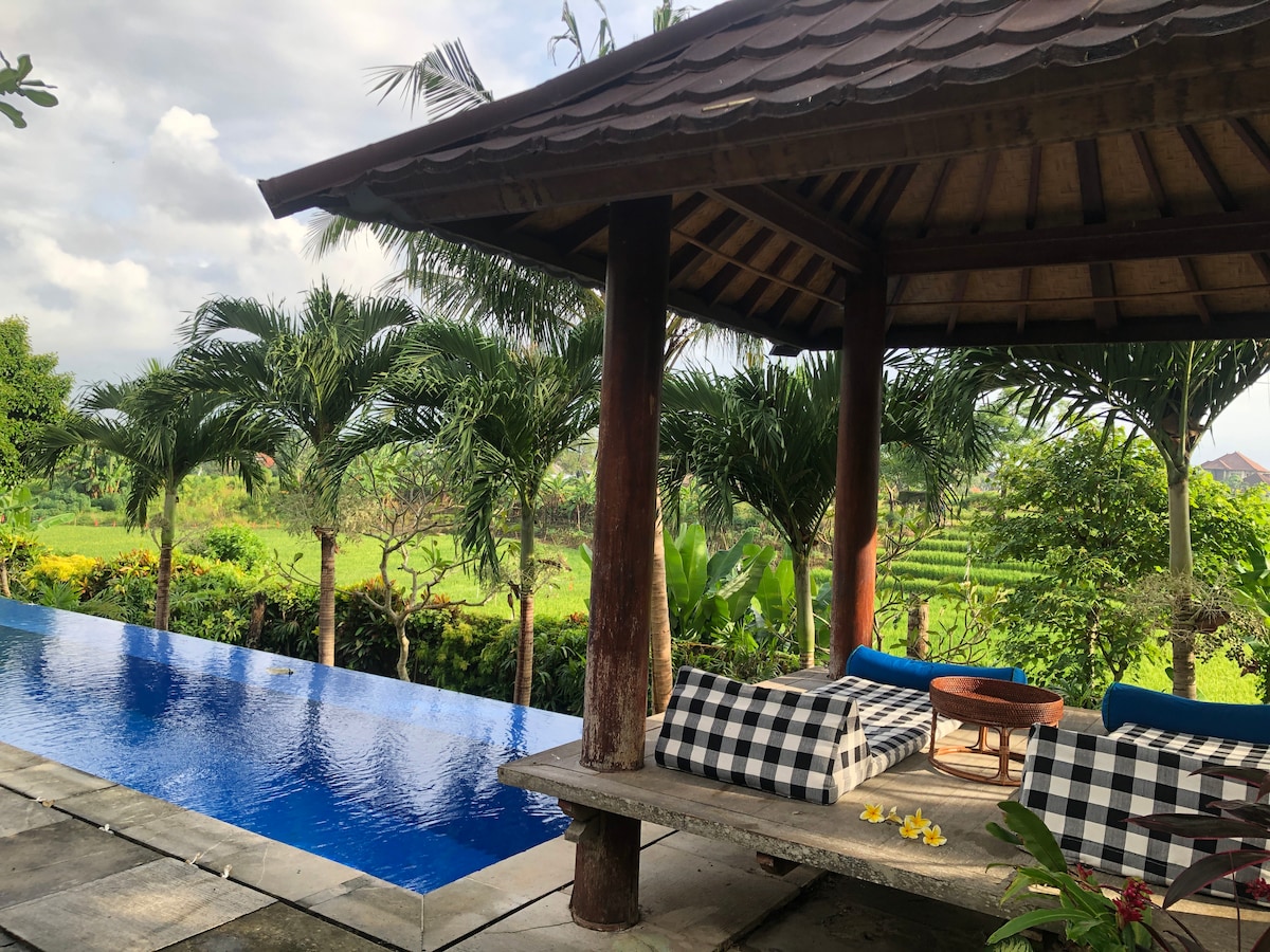 稻田中带泳池的舒适1卧室别墅