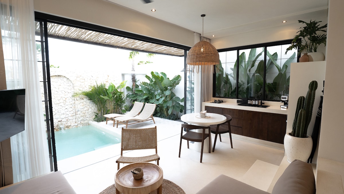 ☕ Starbucks – 300 m 📍 FINNS Recreation Club – 120 m 🏖️ FINNS Beach Club – 1 km 🌊 Atlas Beach Club – 1 km Discover understated luxury in the heart of Berawa. This spacious 250 m² three-bedroom villa is crafted with high-end finishes, Miele appliances, an 85-inch TV, and a serene open-plan layout that flows seamlessly to a private pool and outdoor lounge. Located in a 24/7 secured complex, it offers peace of mind with concierge-style service from your dedicated villa manager.