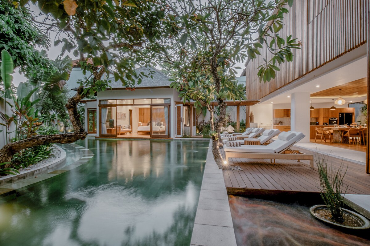 Escape to our stunning villa just 2km from the beach, with cafés and shops nearby. Enjoy a private pool, outdoor cinema, piano, VR games, PS5, Netflix, karaoke, and TVs in every room. Cook in the full kitchen or grill by the BBQ. Blending Balinese charm and modern comfort, this homey retreat offers everything for a peaceful, fun-filled family getaway. Book our Intro Promo for an unforgettable stay!!