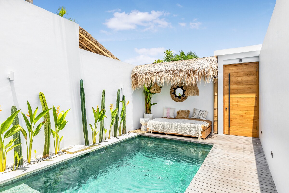 Located in the heart of Canggu, just a one-minute walk from Canggu Beach, The Clifton offers an intimate collection of tropical designed one-bedroom villas each featuring a private swimming pool and lush garden, creating your own peaceful tropical sanctuary. Each villa is designed for comfort and privacy, while still being close to Canggu’s vibrant cafés, restaurants, and beach clubs. **The rate is for Room Only. Floating breakfast / breakfast is available upon request for an additional fee.