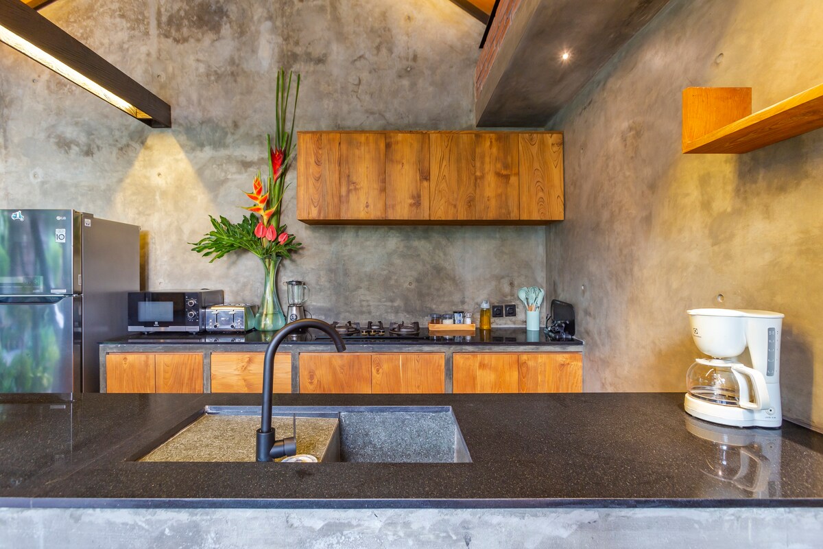 Discover a charming tropical escape at Casa Pumara, a stylish mezzanine villa with your own private plunge pool. Designed with warm natural wood, elegant arches, and beautiful natural light, the space offers a cozy yet sophisticated atmosphere. Relax on the swing, unwind in the sunken living room, or enjoy a peaceful moment by the pool surrounded by tropical greenery. Perfect for couples or travelers looking for a unique and relaxing Bali stay, conveniently located near Kerobokan and denpasar.