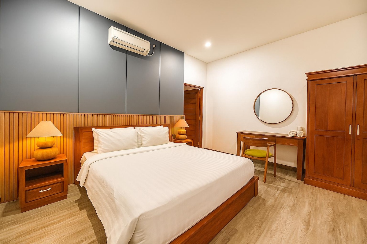 Relax with the whole family at this peaceful place to stay, With 5 seperate Villas with private living room, bathroom and kitchen. You can also access our outdoor sharing kitchen living room and dining. Feel free to cook your own breakfast and Meal,as we provided the cookware.A friendly warm and helpfull host. Experience the local area and easy access to tourism activity, less than 1km to restaurants malls and cafe also beaches, 5mins from the AirPort.