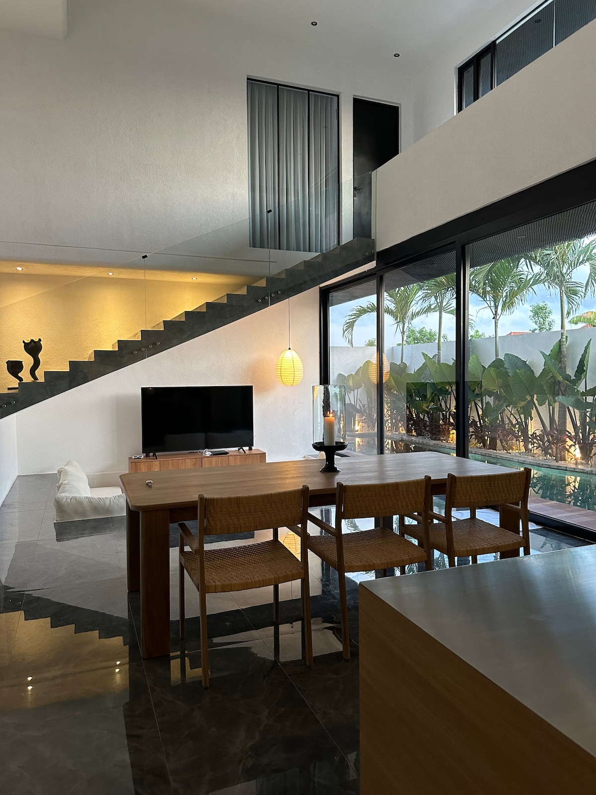 Our two-story residence captures the essence of serenity, featuring expansive living areas, spacious master suite with en-suite bathtub, bathroom and walk-in closet, fully equipped kitchen island, and private pool surrounded by a lush tropical oasis. We offer more than a stay; we create experiences. Enjoy a relaxing in-villa massage, or movie nights with a projector and popcorn. Each moment is curated to rejuvenate and inspire, creating a stay uniquely yours.