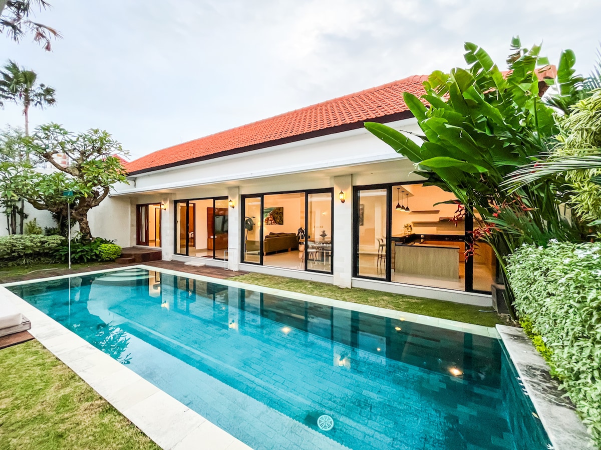 Frangipani Jingga Villa, fully staffed villa Located in the heart of Berawa Canggu. Your Perfect holiday gateway! ✔ 3 luxurious bedrooms featuring AC,TV Netflix & en-suite bathrooms ✔ 3,5mx9m Private Pool ✔ Fully-equipped kitchen ✔ Walking distance to Berawa Beach, Finns & Atlas Beach club, Supermarket, SPA, ArtShop etc ✔ Rooftop Terrace & sunbed ✔ High speed Fiber-Optic Wi-Fi(150mbps) ✔ Daily House Keeping ✔ Regular replacement of linens and towels. ✔ 24/7 Security staff ✔ Consierge Service.