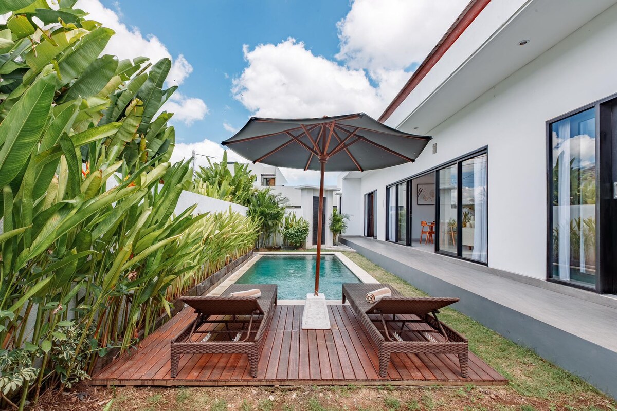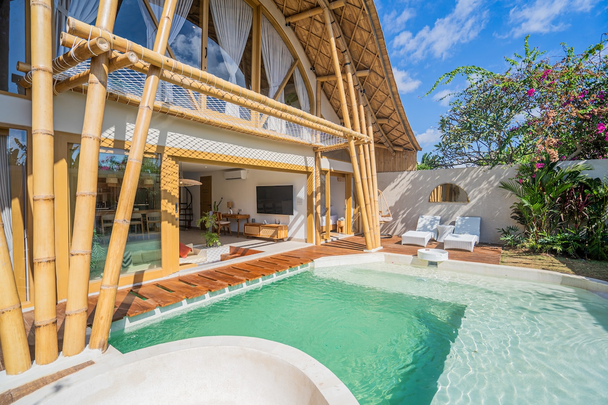 Experience the magic of Bali at Villa Melao, a stunning 3-bedroom eco-friendly retreat in serene Kerobokan. Perfect for families or groups, this spacious oasis features king-sized en-suite bedrooms, a breezy open-concept living area, and a private pool. Relax on the unique net terrace or in the lush tropical garden. Perfectly positioned between the trendy vibes of Canggu and the chic dining of Seminyak, it’s your ideal home base for a stylish and tranquil island escape.