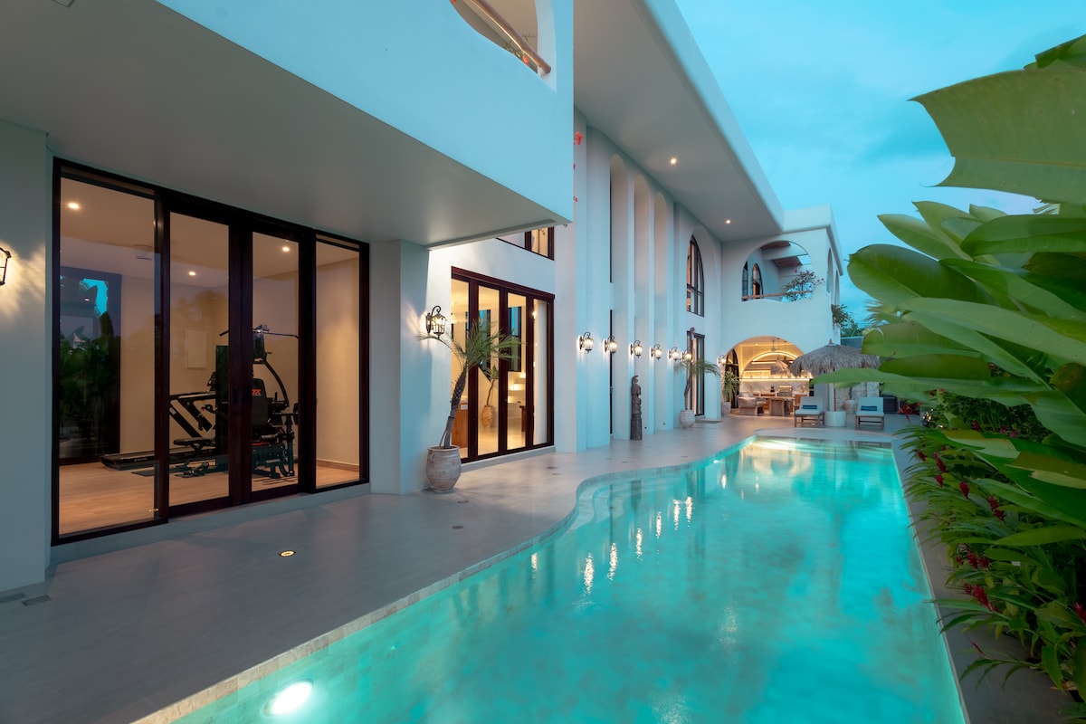 3 ensuite room villa - perfect for families or groups who value design and privacy. Inspired by a New York City townhouse, the villa blends striking glass-block architecture with airy interiors and plenty of natural light. Relax in your private pool with jacuzzi, soak up in the sun on the terrace with beach views and infra sauna or enjoy cozy movie nights. With a vibrant neighborhood just outside your door and everything you need inside, this villa is the ideal setting for a truly memorable stay