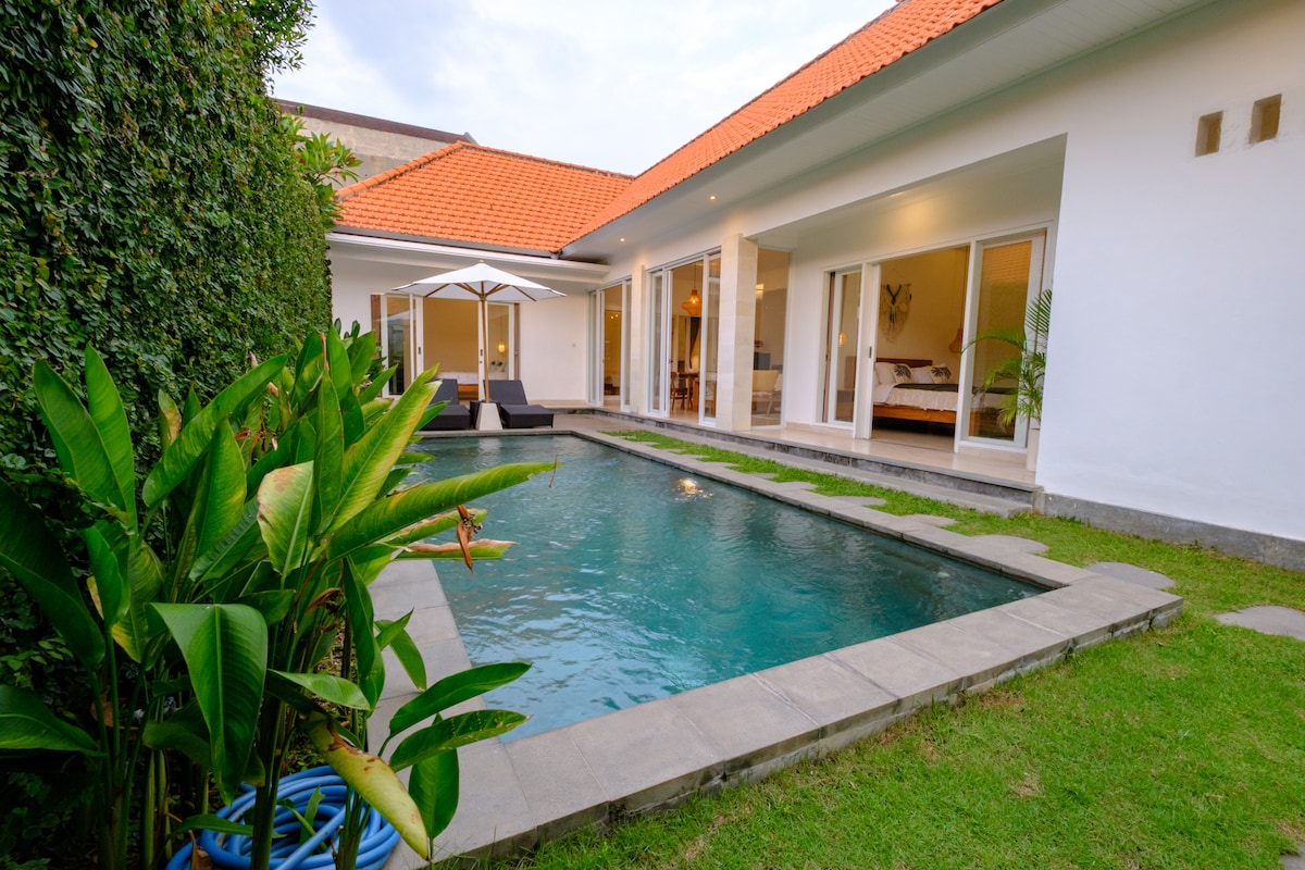 The villa is set above 150 meter square land in a charming tropical villa compound located between Seminyak and Canggu where sunset beach with many lovely cafés and beach clubs is only 4 minutes walk. The villa comes with daily cleaning service, breakfast, private pool with day bed, large living area, fully equipped kitchen , open-air bathroom with bath tub and outdoor shower.