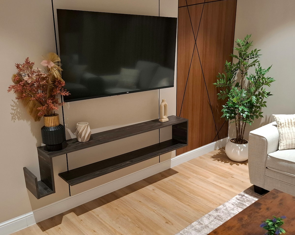 مرفق سياحي هادي ومنعزل وسكن خاص وصول ودخول ذاتي Netflix بث مباشر لقنوات العالم YouTube إنترنت مفتوح شاشة 75 بوصة مكينة قهوة سوداء مع المطحنة والبن ثلاجة صغيرة