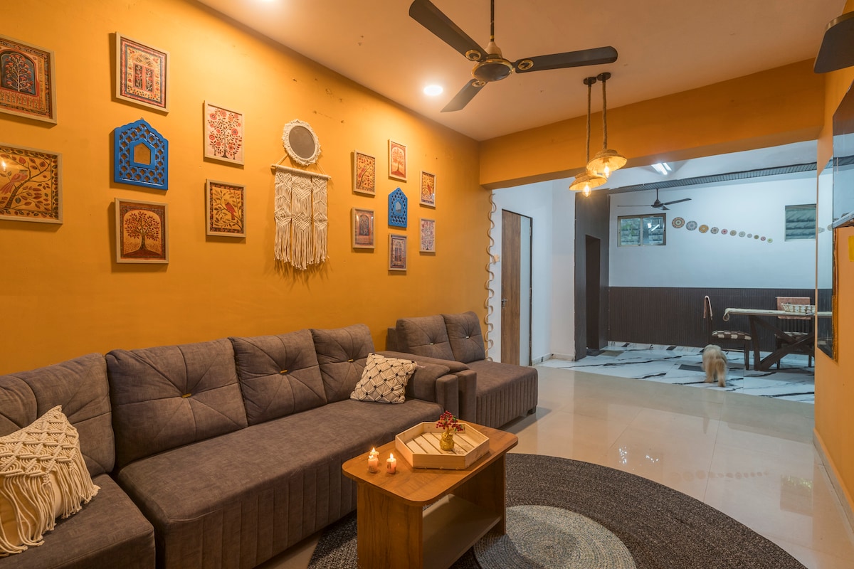 Stay at our cozy boho-style 4BHK villa near Devka Beach, perfect for families and groups. The villa features 5 comfortable beds, a relaxing sit-down pool with seating, and a spacious terrace to unwind. Enjoy a fully functional kitchen for home-style meals and warm interiors designed for comfort. Located just minutes from Devka Beach and close to local attractions, it’s an ideal stay for a relaxing beach getaway.