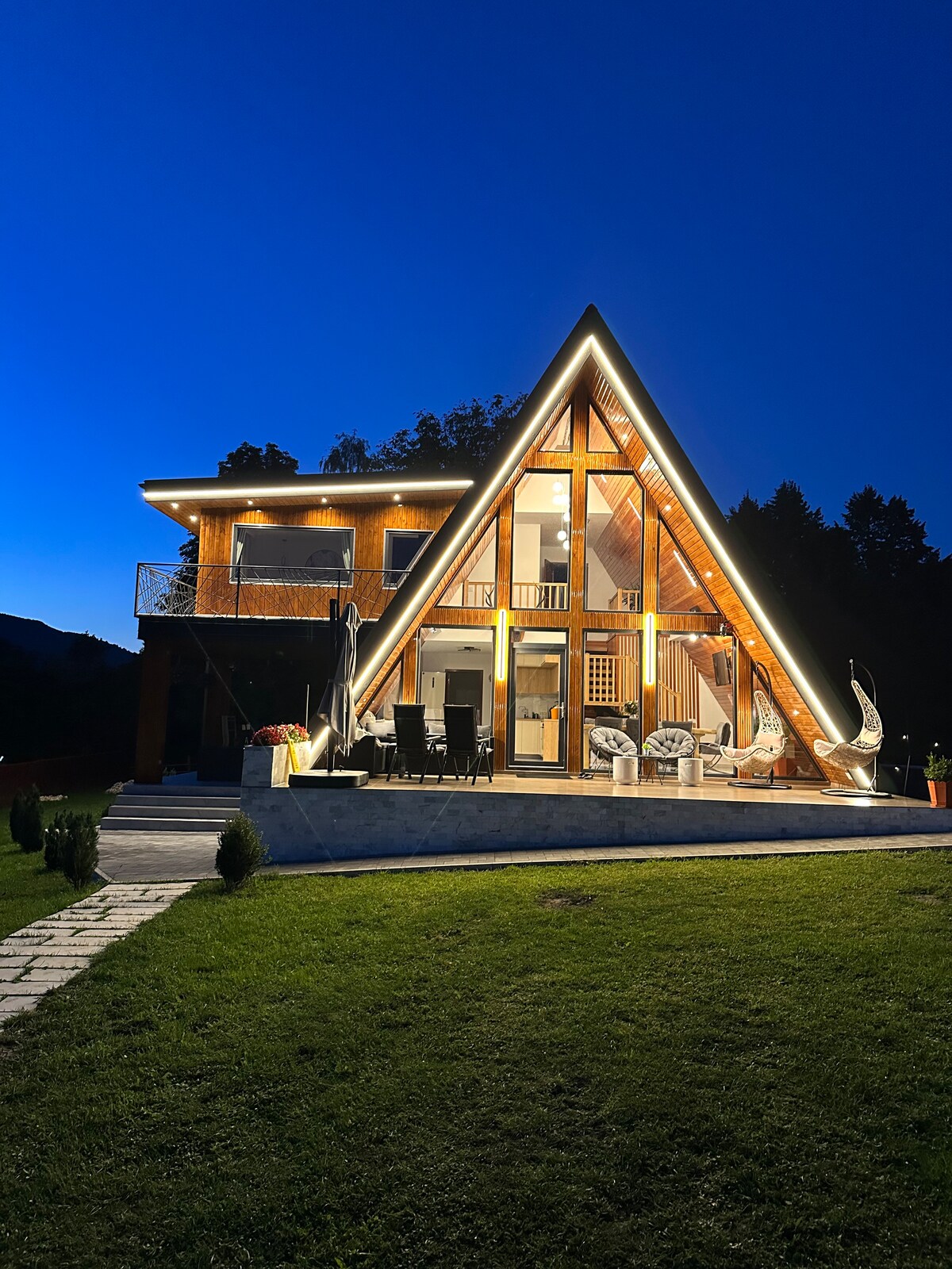 Cabana Zeneris A-Frame este refugiul tău cozy în inima naturii, cu living spațios și home cinema, bucătărie complet utilată și dormitor cu priveliști spectaculoase. Curtea de 1200 mp are loc de foc, grătar, foișor și leagăne, perfecte pentru relaxare. La doar 2 ore de București, cabana oferă liniște, confort modern și o experiență de neuitat pentru cupluri, familii și prieteni.