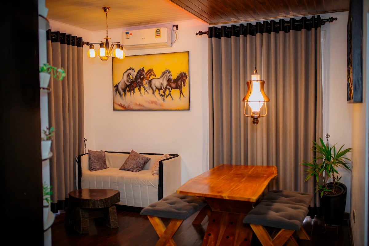 Located on Dambulla-Kandalama Main Road, our 2 Bedroom villa(AC) offers an entire private second floor with a separate entrance, luxury living space, and a modern kitchen. Suitable for families, it provides easy access, better security, reduced travel time, and a lovely evening street view. Nearby Dambulla Cave Temple: 2 km Sigiriya Rock: 15 km Pidurangala Rock: 7 km Habarana Safari: 18 km Dambulla Cricket Stadium: 5 km Anuradhapura: 72 km Polonnaruwa: 80 km Kandy : 72 km
