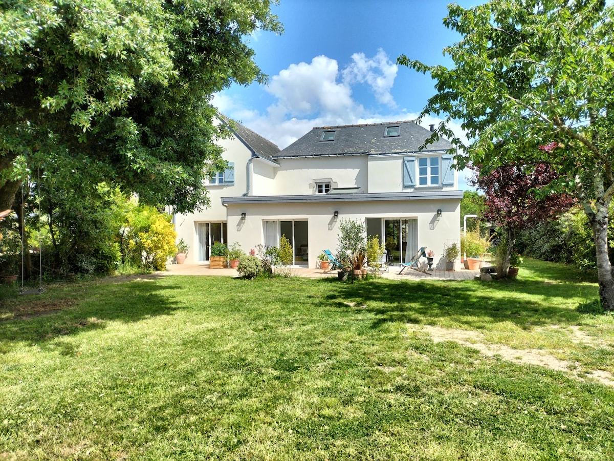 Maison contemporaine très lumineuse avec une grande terrasse baignée de soleil du matin au soir. Le plus: suite parentale (duplex) constituée d'un séjour, chambre , salle de bains , terrasse, balcon à l'étage. Cette partie peut être totalement indépendante. Idéal pour accueillir des amis. Situation idéale pour visiter le golfe du Morbihan et sa région. Plage, piste cyclable à 150m . WIFI. 2 vélos. Kayak sur demande préalable Durée mini: - hors vacances: 2 nuits, fériés 3 nuits - été: 7 j