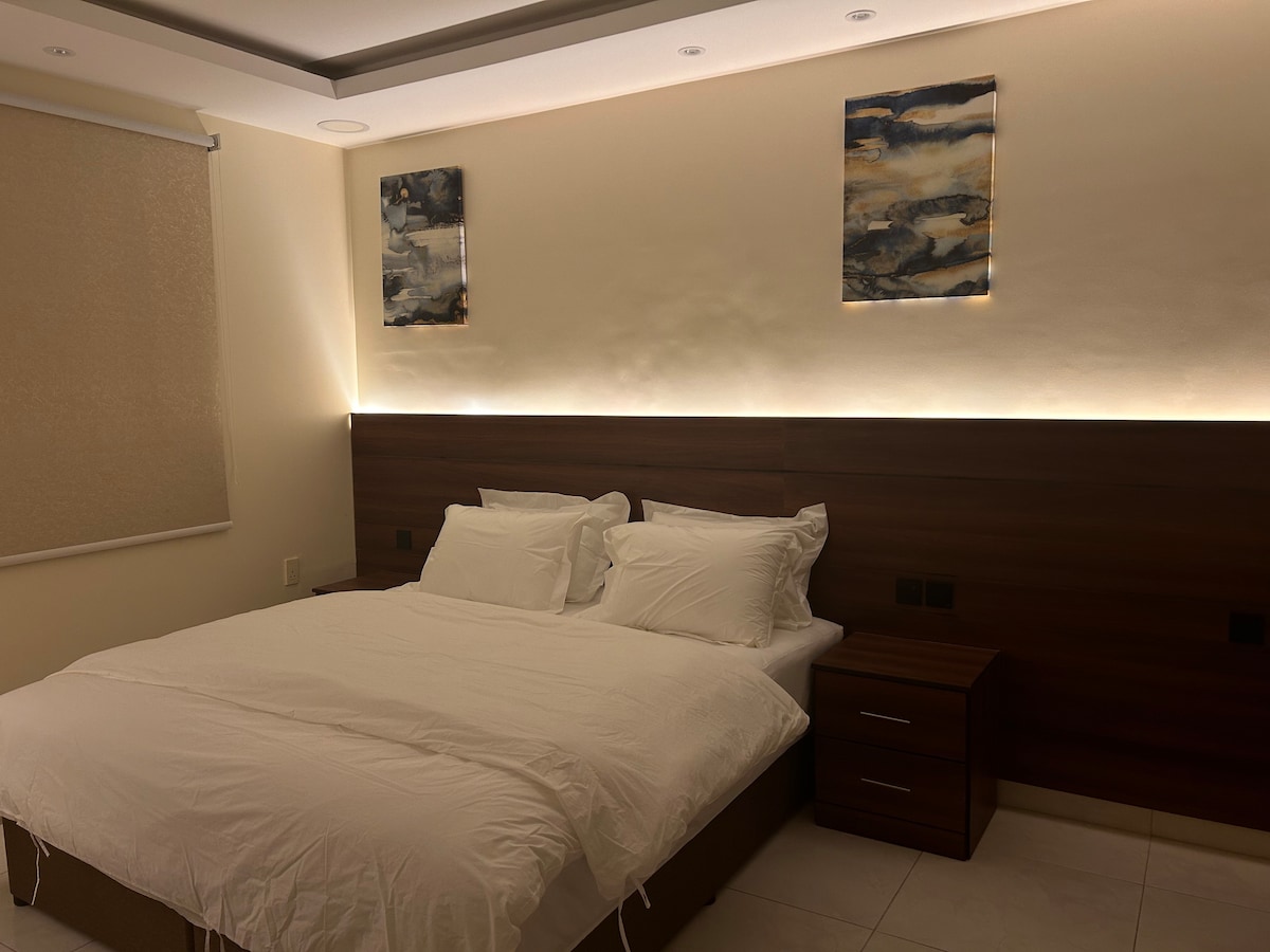 This new 1-bedroom, 1-bathroom apartment, it has its own private entrance directly from the street — no need to enter a building. It's in a quiet and nice area in Dhahran, close to everything you need. It's comfortable and easy to stay in.