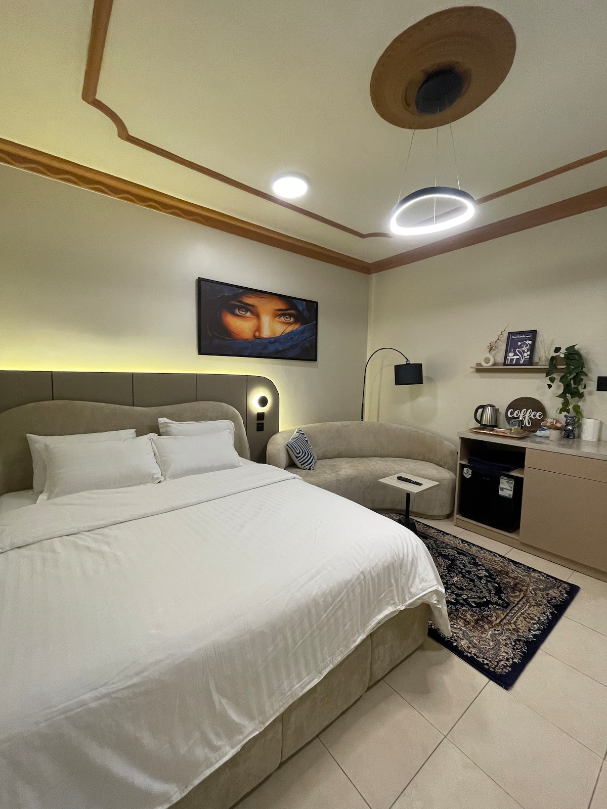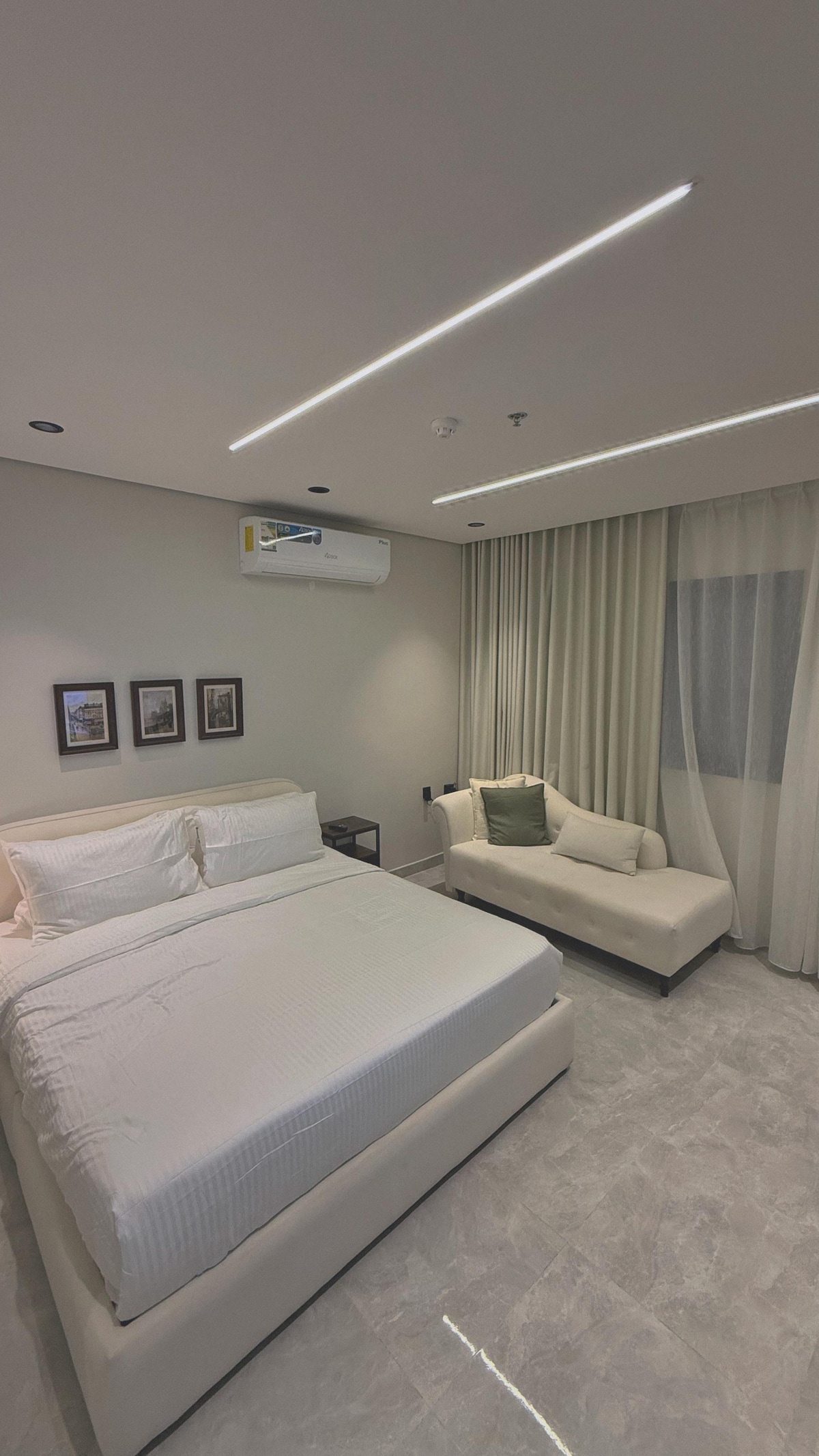 تم تصميم هذا المسكن ليتناسب مع احتياجك ويصنع رفاهيتك وراحتك بكامل التفاصيل ، يتميز بالخصوصية والأمان بدخول ذكي واحتياجات غرفة النوم لقضاء ليلة هانئة وسرير ماستر وشاشة ذكية 60 بوصة وشبكة واي فاي ويتميز بموقعه المميز وقربه من سكة القطار ومركز تسوق يبعد تقريبا 4 كيلو صمم بألوان مريحة وأثاث مودرن ليصنع راحتك ... اتمنى لك قضاء ليلة سعيدة ...