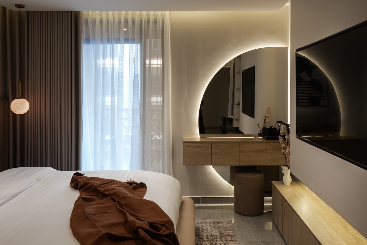 Welcome to your elegant getaway! This luxury 1-bedroom apartment offers a perfect blend of modern comfort and sophisticated design. Thoughtfully furnished with stylish interiors, high-end finishes, and warm ambient lighting, this space is designed for both relaxation and productivity.