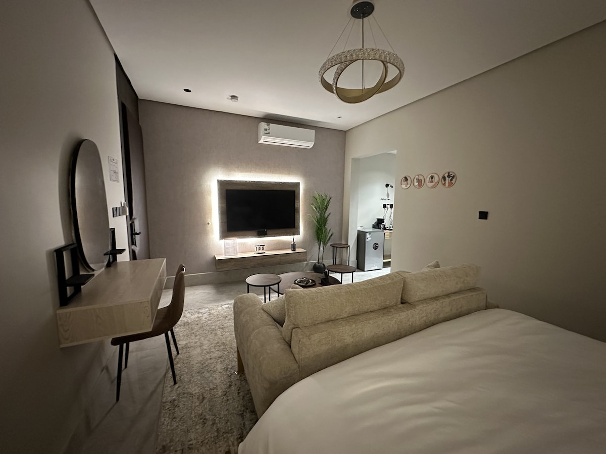Welcome to Y, a spacious and newly built luxury flat in Khobar, just minutes from the Bahrain Causeway. This elegant retreat features one bedroom, a guest room, and a modern bathroom, all designed for comfort and style. With its generous layout and high-end finishes, Y is perfect for travelers seeking space and relaxing . Enjoy easy access to dining, shopping, and major highways, or unwind in your serene, spotless sanctuary. Whether business or leisure, Y promises a memorable stay.