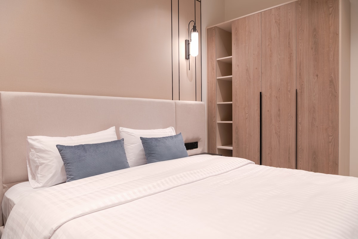 تم تصميم هذا المسكن ليتناسب مع احتياجك ويصنع رفاهيتك وراحتك بكامل التفاصيل ، يتميز بالخصوصية والأمان بدخول ذكي واحتياجات غرفة النوم لقضاء ليلة هانئة وسرير ماستر وشاشة ذكية 60 بوصة وشبكة واي فاي ويتميز بموقعه المميز وقربه من سكة القطار ومركز تسوق يبعد تقريبا 4 كيلو صمم بألوان مريحة وأثاث مودرن ليصنع راحتك ... اتمنى لك قضاء ليلة سعيدة ...