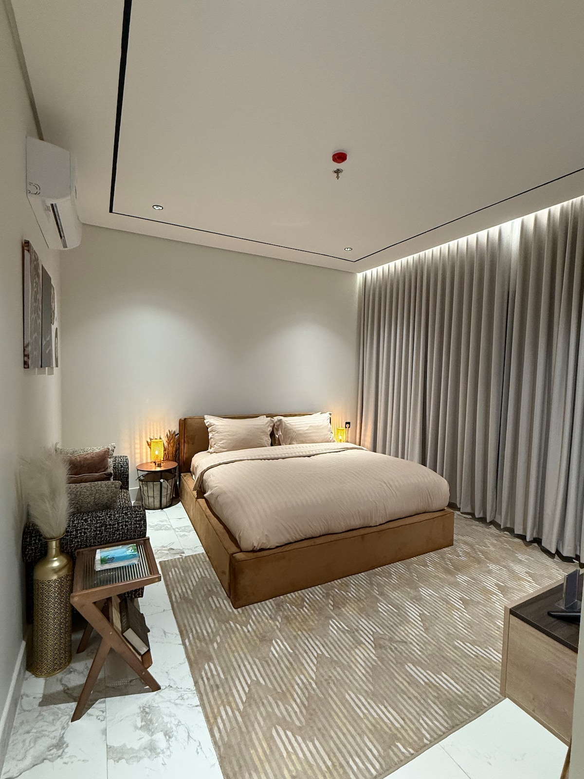 شقة مكونة من غرفة وصالة انيقه وهادئه بحي السيف – موقع مميز على بُعد دقيقة من بحر الراكة والتركات، 6 دقائق من الظهران إكسبو، و10 دقائق من جامعة الإمام عبدالرحمن بن فيصل مجهز بسرير مريح، شاشة سمارت، مكيف بارد، واي فاي، دخول ذكي، ومواقف متوفرة. مثالي للإقامات الهادئة والمميزة في قلب الخبر