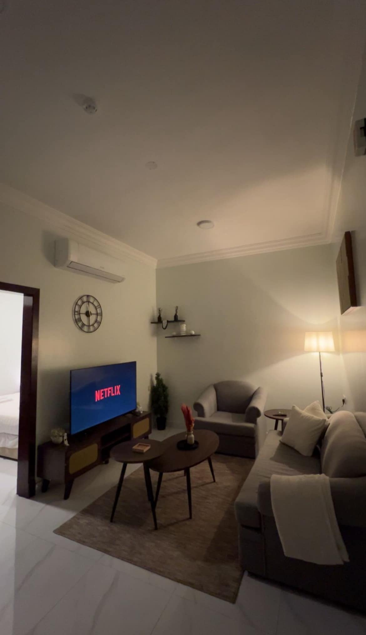 Enjoy your stay in this elegant and spacious studio apartment, designed with modern touches and cozy comfort. The space features: • Queen bed • Smart TV • Comfortable seating • Bathroom — all in one open, airy layout. 📍 Prime Location: • 10 min to Ajdan walk/ Corniche • 6 min to Dhahran Mall • 10 min to Aramco & KFUPM • 10 min to Bahrain Causeway • Only 2 min walk to Flamingo Mall Perfect for business travelers or couples looking for a relaxing, well-connected stay in Al Khobar.