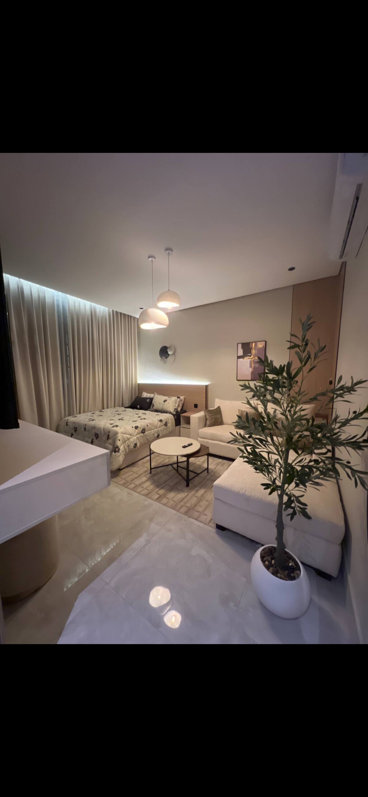 ستديو كبير بتصميم أنيق ولمسات فخمة يحتوي على سرير مريح، تلفزيون ذكي، إنترنت سريع، وجاكوزي خاص دورة مياه بتشطيب فندقي، الموقع في حي العليا الخبر، قريب من الكافيهات والمطاعم والخدمات الدخول ذاتي لتجربة هادئة ومريحة.