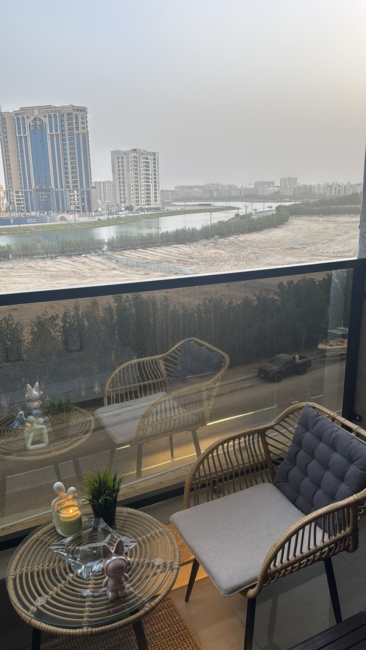 Relax in this cozy apartment located in Al Hamra, Al Khobar. It offers a comfortable bedroom, a welcoming living room, a fully equipped kitchen, and a modern bathroom. Enjoy the private balcony with a cozy seating area and a beautiful lake view, perfect for morning coffee or evening relaxation. A peaceful stay in a great location.
