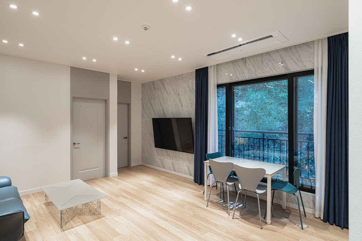 带真空管扬声器和黑胶唱片、光束投影仪和大屏幕、书籍和茶的独立房间 [1.2m 住宿]